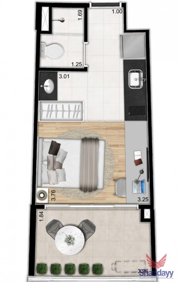 Tipologia: 25m² - 1 dorm